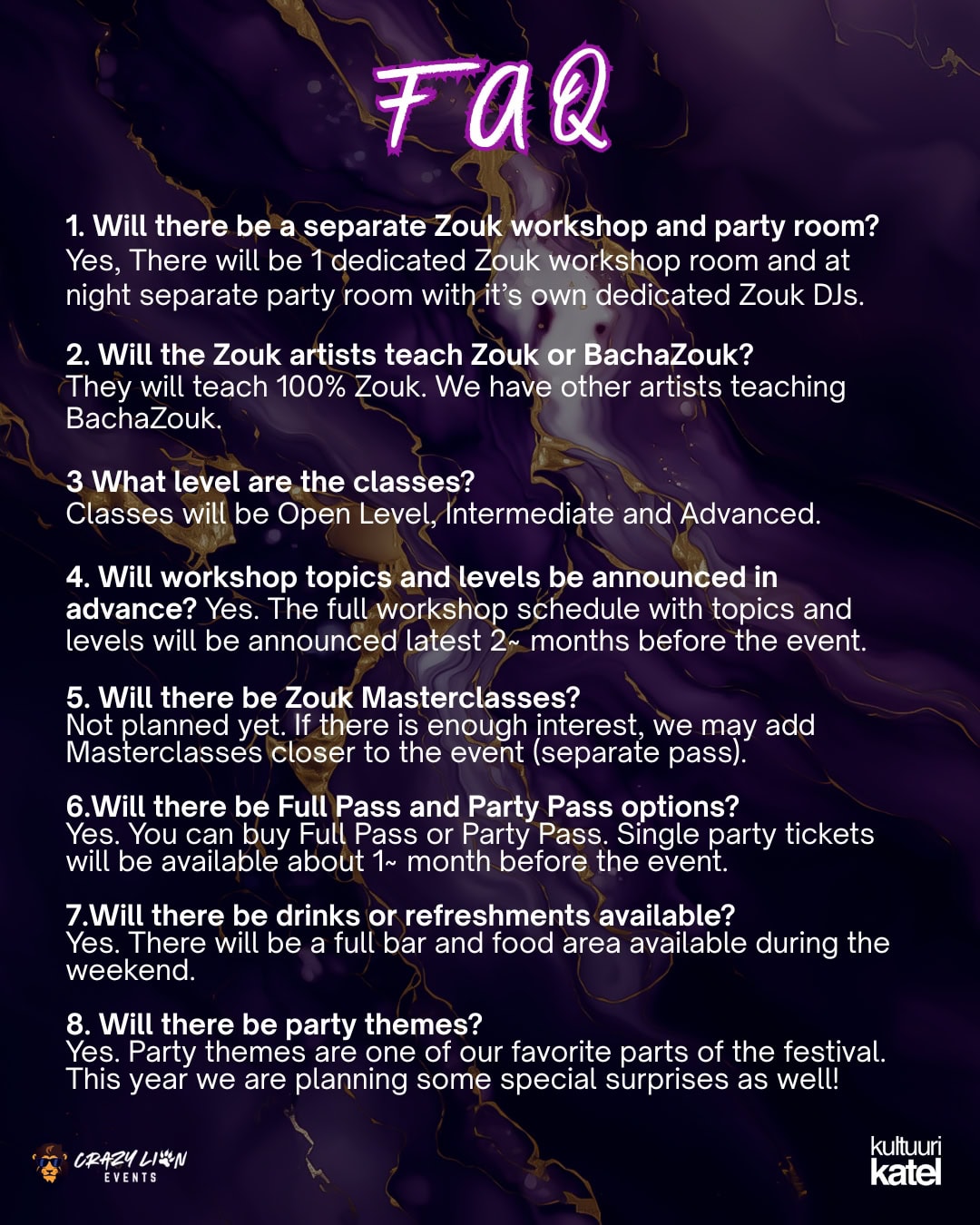 ★ 3 Big Parties & Workshops days (Fri-Sun)